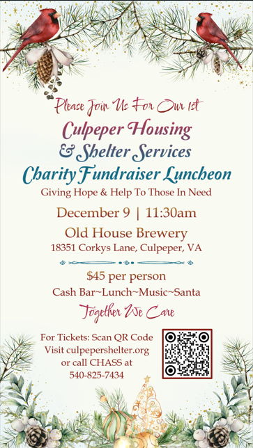 Fundraiser Luncheon on December 9th at Old House Brewery. Please join us for a good cause. All are welcome.